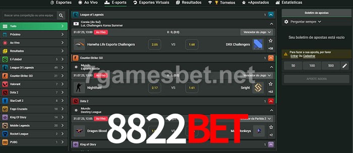 O 8822bet oferece uma grande seleção de opções de apostas em e-sports com probabilidades competitivas